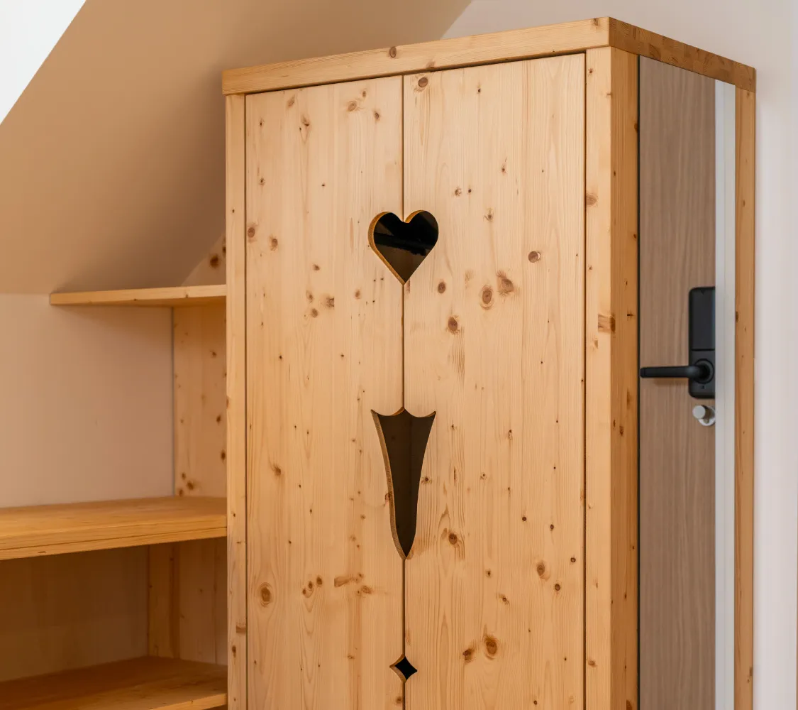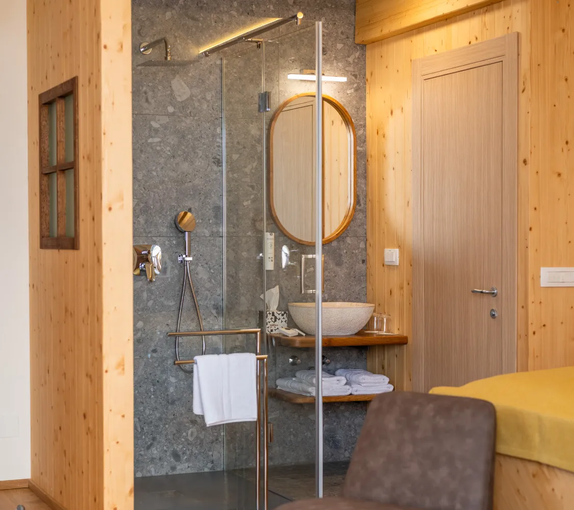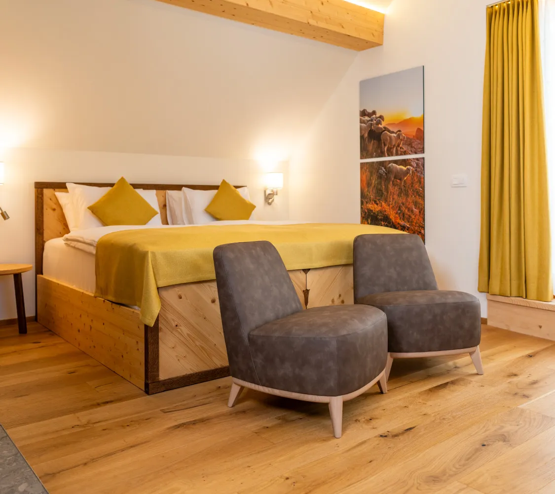 Toplina podeželja se odraža v lesenih detajlih, rumenih tonih in značilnem ambientu starih kmečkih hiš. Kamin pričara domačnost, zasebna terasa pa ponuja miren prostor za oddih. Soba je idealna izbira za tiste, ki cenijo pristnost, naravni stik in trenutke tišine.